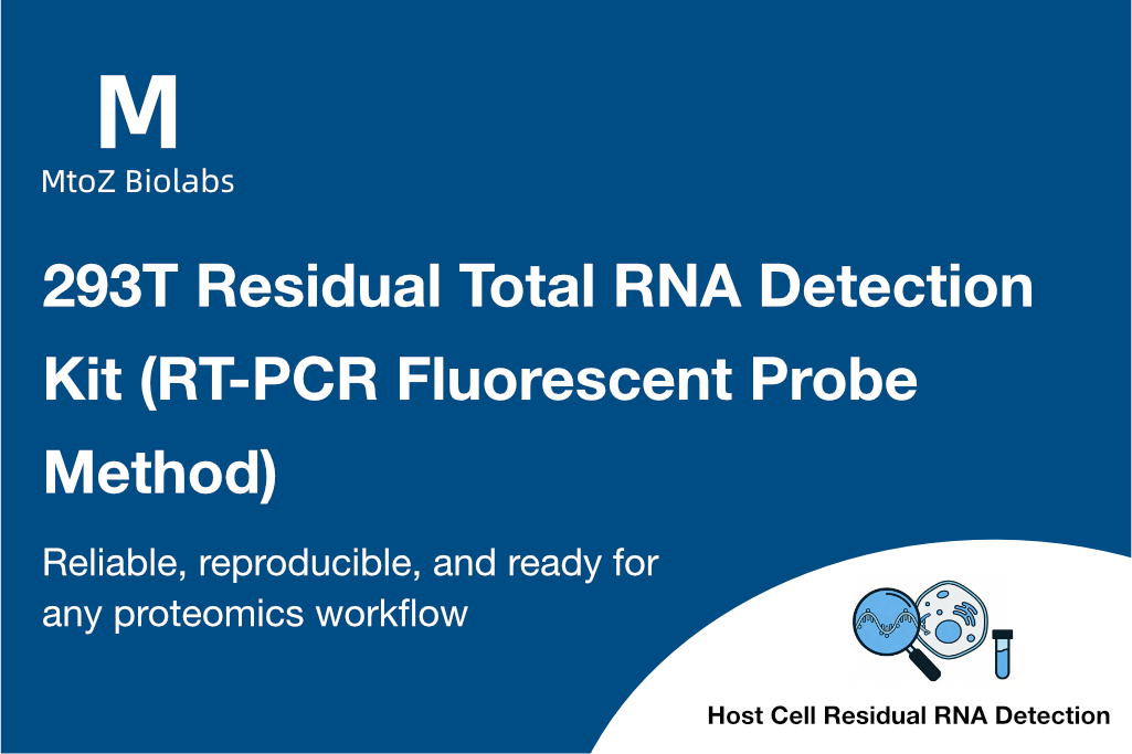 The 293T Residual Total RNA Detection Kit (RT-PCR Fluorescent Probe Method) from MtoZ Biolabs ensures reliable detection of low levels of residual RNA, helping to meet regulatory requirements for biopharmaceutical production.