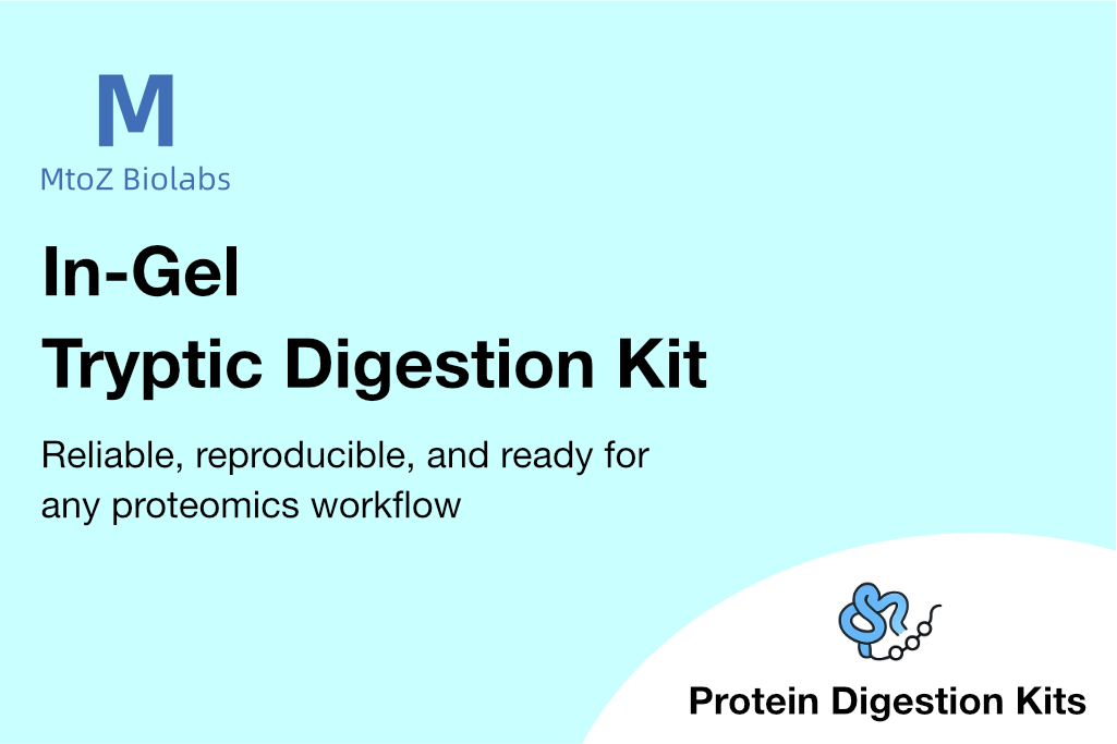The in-gel tryptic digestion kit launched by MtoZ Biolabs is specifically designed for processing protein bands following SDS-PAGE, suitable for downstream MS applications. The kit provides a complete set of reagents, including systems for destaining, reduction, alkylation, digestion, and peptide recovery. It enables digestion and peptide extraction from protein bands stained with Coomassie or fluorescent dyes, ensuring stable and reproducible results across different batches and experimental conditions.