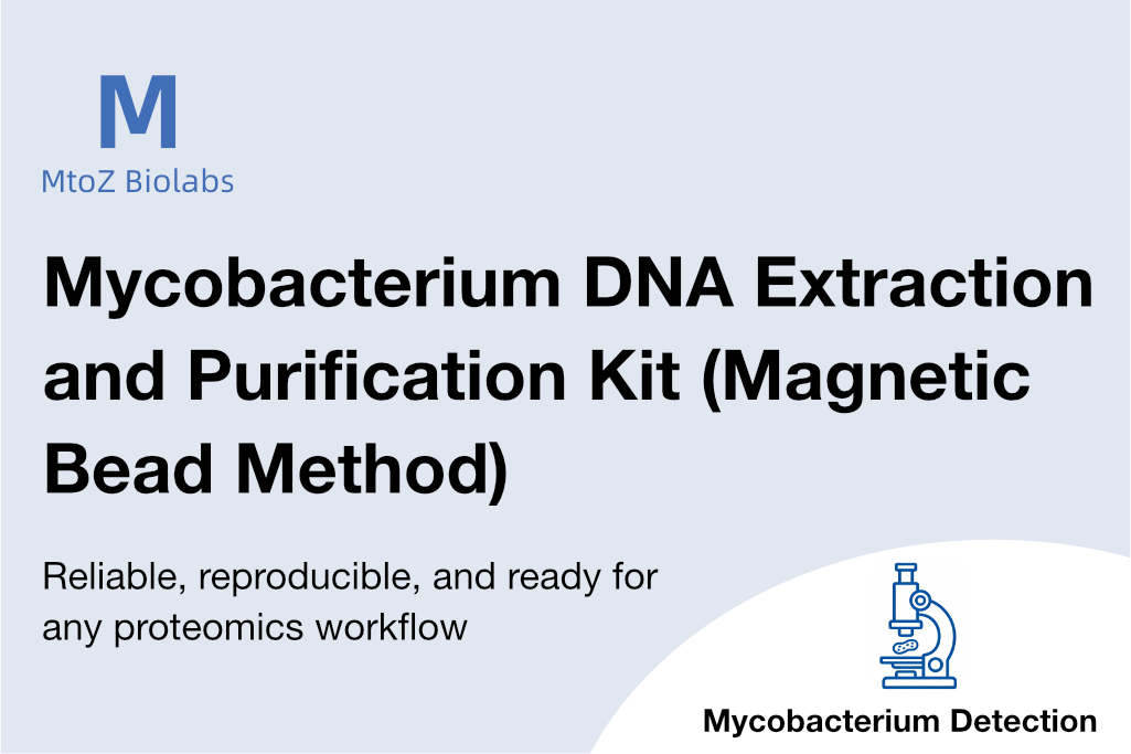 The Mycobacterium DNA Extraction and Purification Kit (Magnetic Bead Method) from MtoZ Biolabs is designed for efficient extraction and purification of trace mycobacterial DNA from biological and process-related samples. The kit supports both manual and automated sample preparation for downstream PCR and other nucleic acid-based workflows.